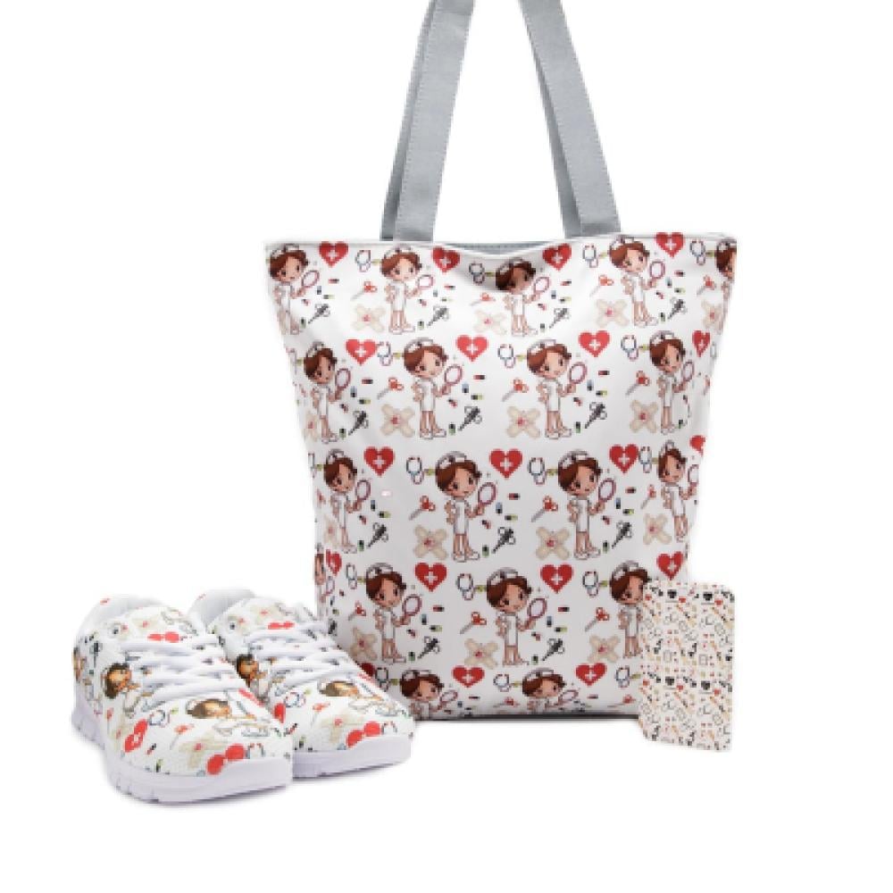The elegant Kashkhat package is the perfect choice for you! This package includes a trendy bag, comfortable shoes, a business card holder, and a cotton sock with a cartoon-print cotton bag. Ideal for girls, women, and nurses, to help you look your best on your day.